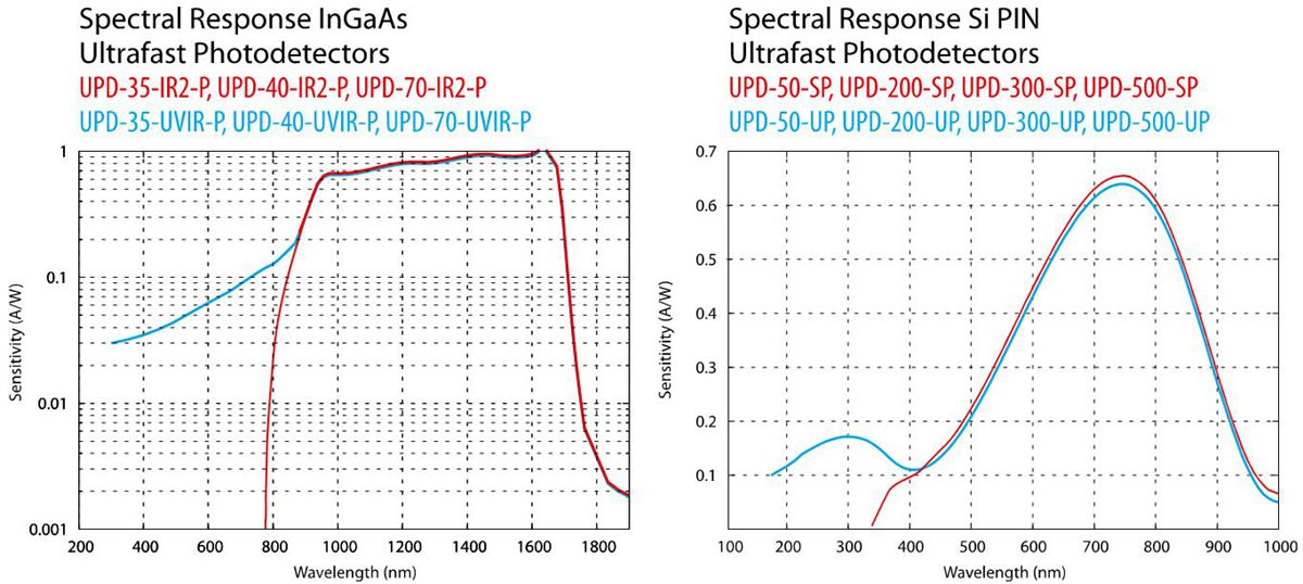 ALPHALAS UPD系列自由空间入射超快光电探测器系列适合用于从直流到25GHz的空间光波形的测量。可提供检测最短为15ps上升时间的光脉冲信号,覆盖从170至2600nm的光谱范围。 所有探测器都由紧凑坚实的过氧极化铝外壳封装,供电方式可以采用电池或外接电源。 可提供从170到1100 nm扩展到紫外光谱范围高速硅探测器商业产品。 另一种类型独特的紫外线敏感的InGaAs探测器,可用于检测从350到1700纳米范围内的激光脉冲,因此具有宽的光谱范围和高的响应速度。 优异的阻抗匹配和微波技术,确保测量的脉冲波形的保真度。用户可以自由使用50Ω的匹配电阻,进行高响应速度的检测。或为获大的信号响应曲线,加入高阻抗负载。保证了UPD产品为不同的应用提供优异的灵活性。 结合BBA系列宽带高增益放大器,高速光探测器对于取代昂贵和繁琐的雪崩光电二极管是一个好的选择。UPD的系列高速光电探测器是激光和光子学研究的常用的工具之一。