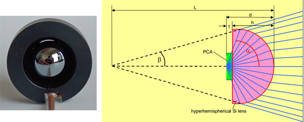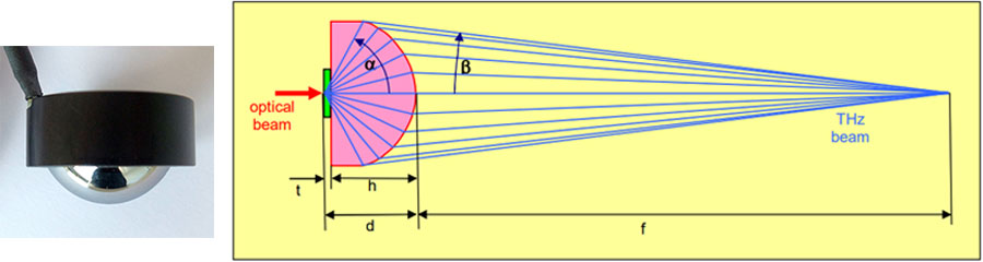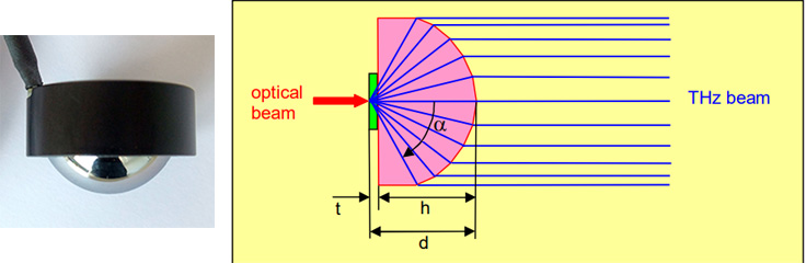 x = h: 封装高阻硅透镜,透镜直径12mm,输出发散的太赫兹光束,带1m长同轴线缆,BNC接头