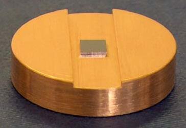 ?芯片尺寸4.0 mm x 4.0 mm ,薄膜焊接在水冷铜散热器上,直径25.0 mm,适用于高功率应用。