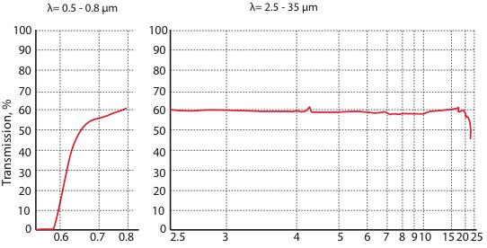 znte晶格结构: 立方闪锌矿 密度: 5.633 g/ cm3 比热: 0.16 J /(kg·℃) 带隙 (300 K): 2.25 eV 最大透过率 (λ =7-12 μm): 60 % 最大电阻率: 109 Ohm*cm 折射率 (λ =10.6 μm): 2.7 电光系数 r41 (λ =10.6 μm): 4.0×10-12 m/V 电阻率: a). low: < 103 Ohm*cm b). high: > 109 Ohm*cm 最大 IR-optic blank 直径/长度: ? 38×20 mm 最大单晶尺寸 直径/长度: ? 38×20 mm
