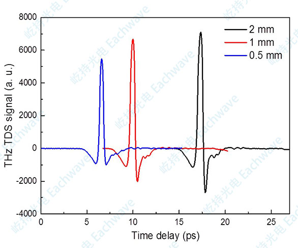 产生端ZnTe晶体厚度为0.5mm,探测端碲化锌晶体厚度分别为0.5mm,1mm,2mm