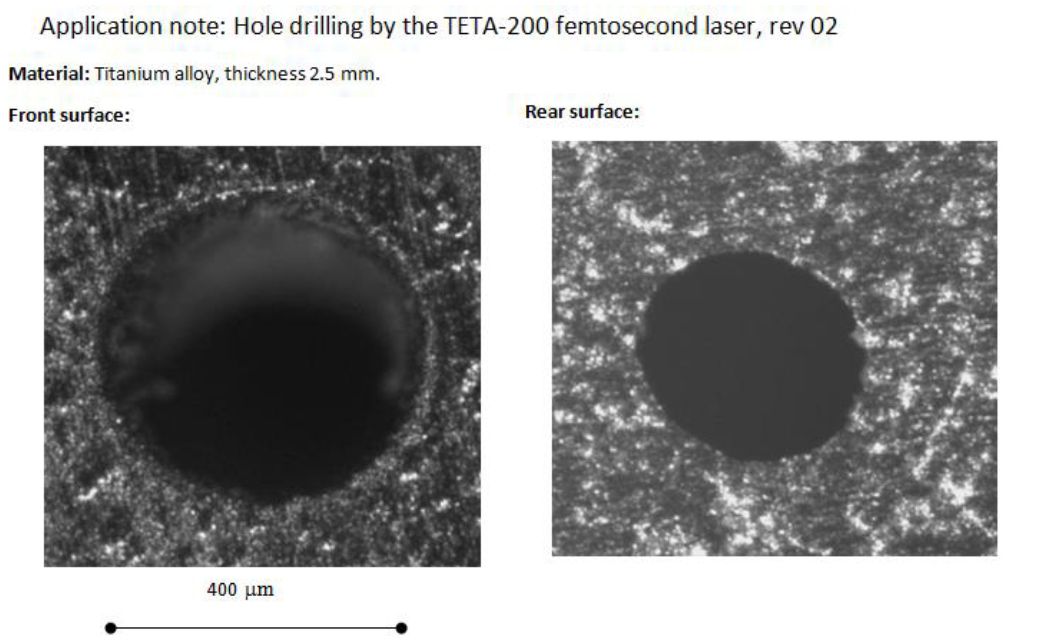 TETA飞秒微加工应用实例1:Ti钛钻孔
