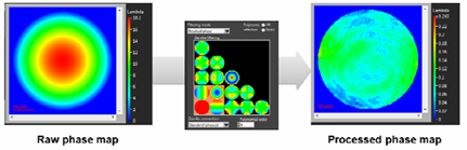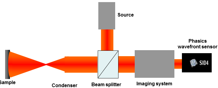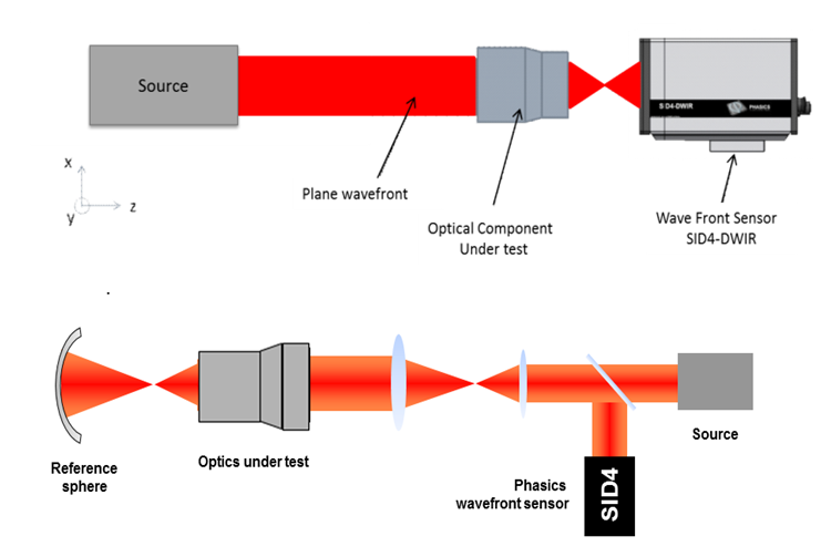 Phasics的SID4软件可以直接测量PtV, RMS, WFE和曲率半径等,可直接进行自我校准,两次测量相位作差等。非常方便应用于平面球面等形貌测量。部分测量光路如右图所示