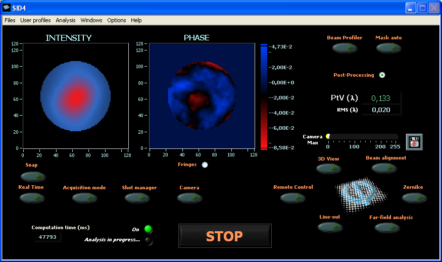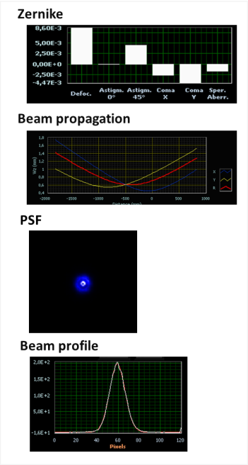 可以实时测量强度相位(2D/3D)信息,Zernike/Legendre系数,远场,光束参数,光束形状M2等。