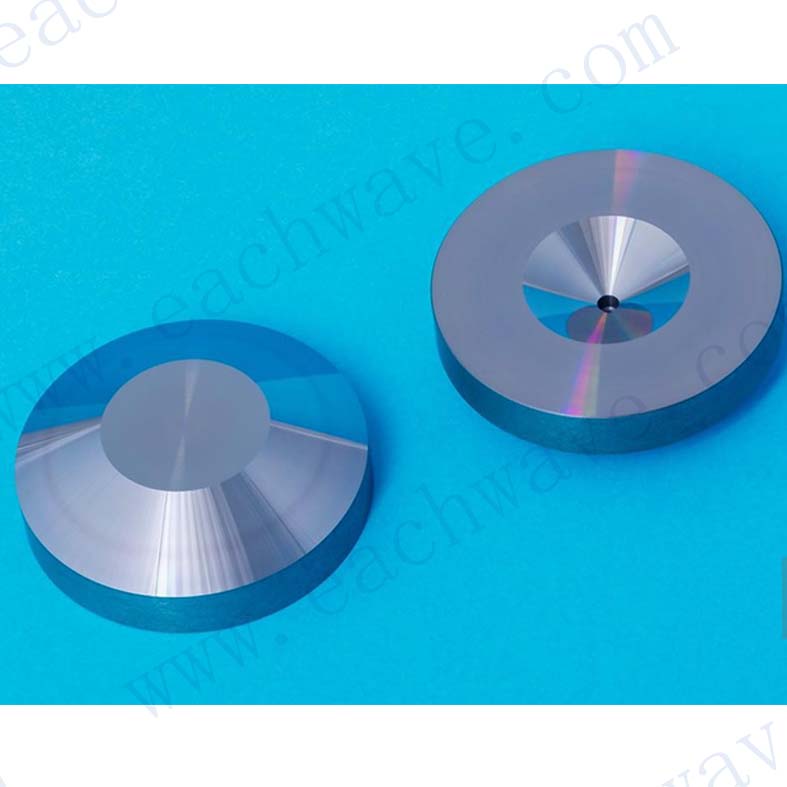 材料 HRFZ-Si 类型 axicon (conical lens) 直径(可定制) 25-150mm 尺寸公差 ±0.2mm 厚度公差 ±0.3mm 粗糙度 Ra 15nm 镀膜 高阻硅材料可镀抗反膜