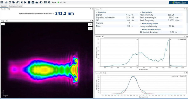 1实时提取空间光谱分布,空间啁啾,傅立叶极限脉冲宽度分析。