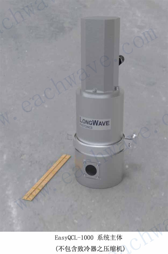 EasyQCL-1000 系统包含: — 量子级联激光器模块 (QCL diode) — 闭循环单级脉冲管致冷器 (Pulse Tube Cryocooler) — 支持连续波或脉冲波操作之激光驱动电子系统 — “钥匙开关” 操作之其它必需配件