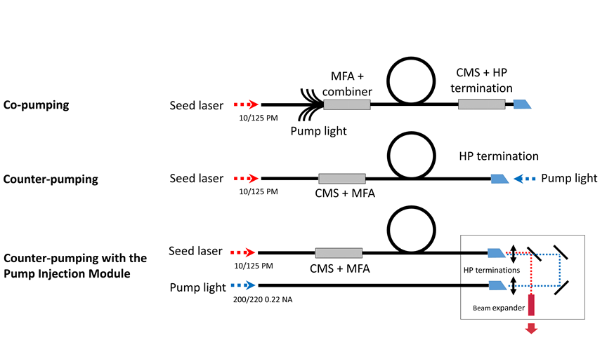 LaserNGN高功率超快激光Yb掺镱光纤增益模块提供counter-propagating和co-propagating两种类型: