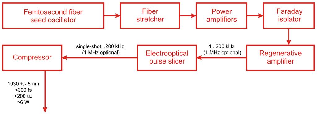 TETA属于固体掺镱再生飞秒放大器。该系统包括一个作为种子振荡器的内置光纤激光器,光纤脉冲展宽器,法拉第隔离器,基于CPA二极管泵浦的再生放大器和附加脉冲选择器和脉冲压缩器等。所有组件都集成在单一恒温箱以确保操作的稳定性和灵活性。附加内置普克尔盒控制激光输出模式和重复频率。此外,该控制单元能够精确控制脉冲触发数和脉冲周期。TETA系统可配备额外二次谐波(SH)和FH(四次谐波)产生装置以及脉冲压缩器,该压缩器能够有效压缩脉冲宽度(<30fs)同时保持>50%能量转换效率。
