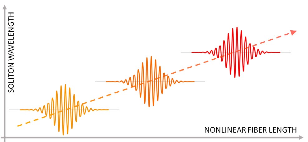 所谓SSFS孤子自频移效应(Soliton self-frequency shift)是脉冲内受激拉曼散射的一种表现形式。光谱偏移的程度取决于非线性相互作用的长度(在此即光纤长度)和输入孤子的峰值功率。为了使这种光纤有效地移动孤子,它应该具有大的(和正的)反常色散,在此光谱区域石英光纤通常具有负色散系数。光纤还应具有小模场直径、低损耗、单模和保偏特性,只有这样它才能保证稳定的工作,并具有低噪声、短脉冲宽度、稳定的偏振和高相干性。换句话说,它不是一种典型的标准光纤,但必须针对工作条件进行优化。SSFS光纤与飞秒激光器的连接损耗非常小(考虑到模式特性的典型差异,减小损耗有点棘手),同时确保不会引入过多的啁啾。