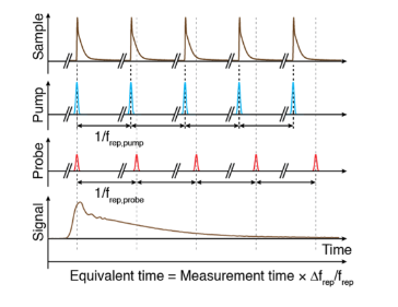 延迟第二个脉冲(“探针”脉冲)通过样品发送,以测量由于初始激发而发生的光学特性变化。通过改变泵浦脉冲和探针脉冲之间的延迟,可以获得样品对泵浦脉冲响应的详细时间记录,并具有高时间分辨率。