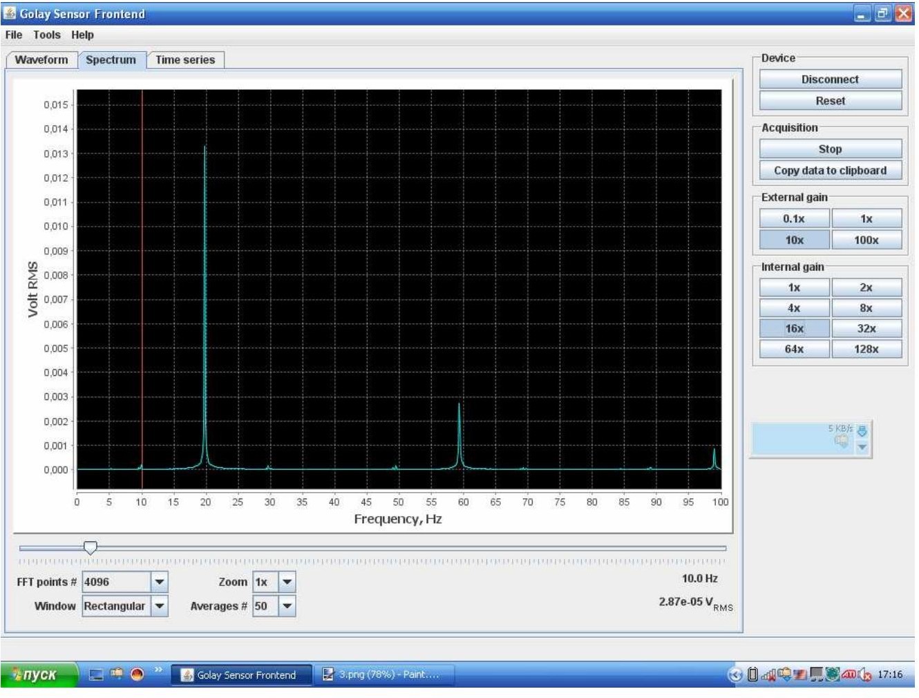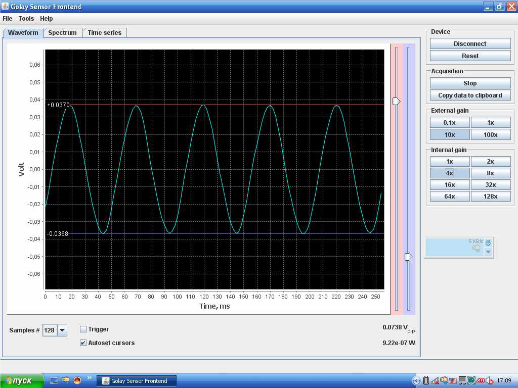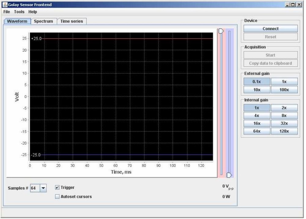要启动软件,请单击文件夹 Tydex 中的项目 Golay sensor ADC frontend Windows 开始菜单。主应用程序窗口出现。